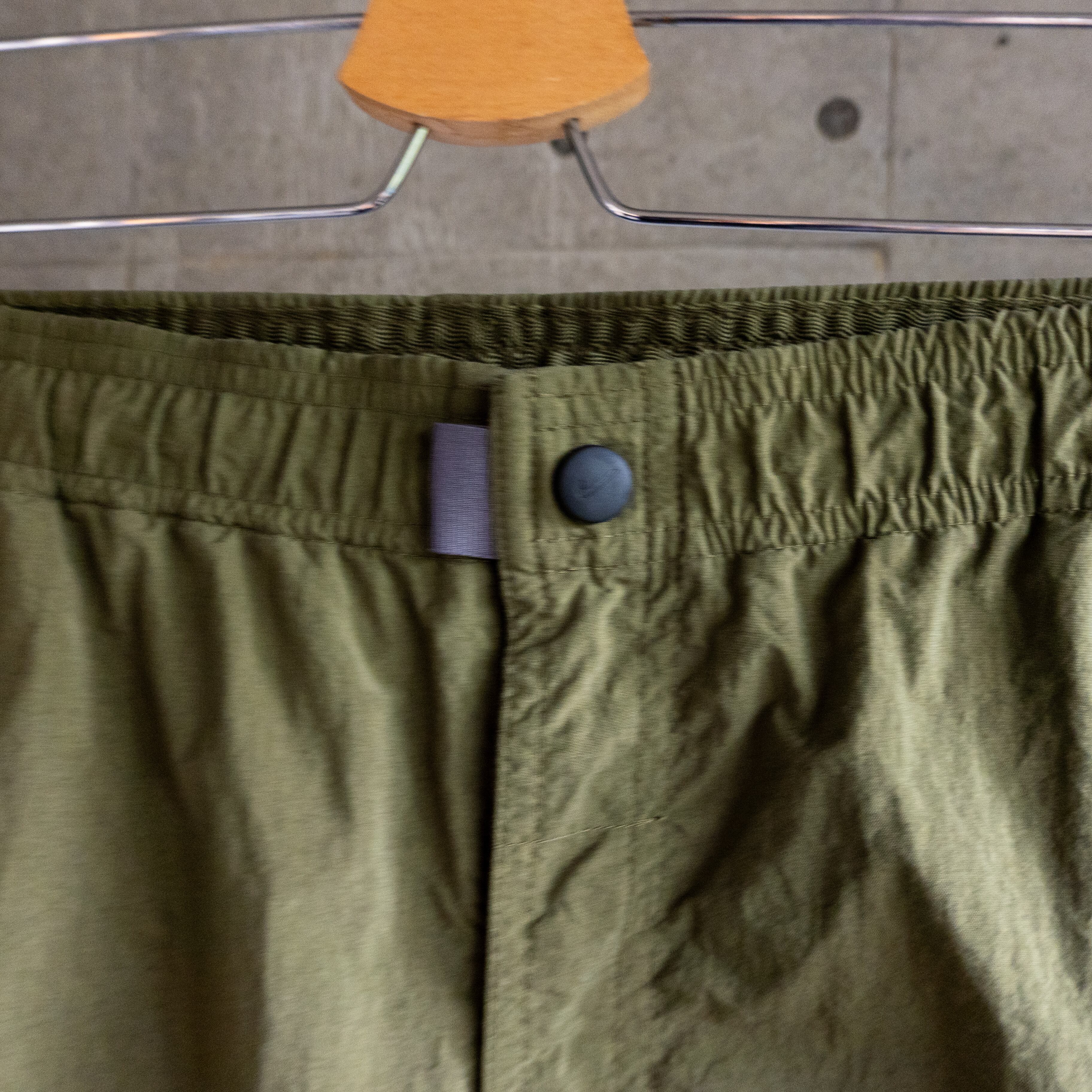 落ち着いたカーキが印象的なこちらのショーツは、計算されたポケットのディテール。無駄をそぎ落としたミニマルなデザインで、着回しやすさ抜群。