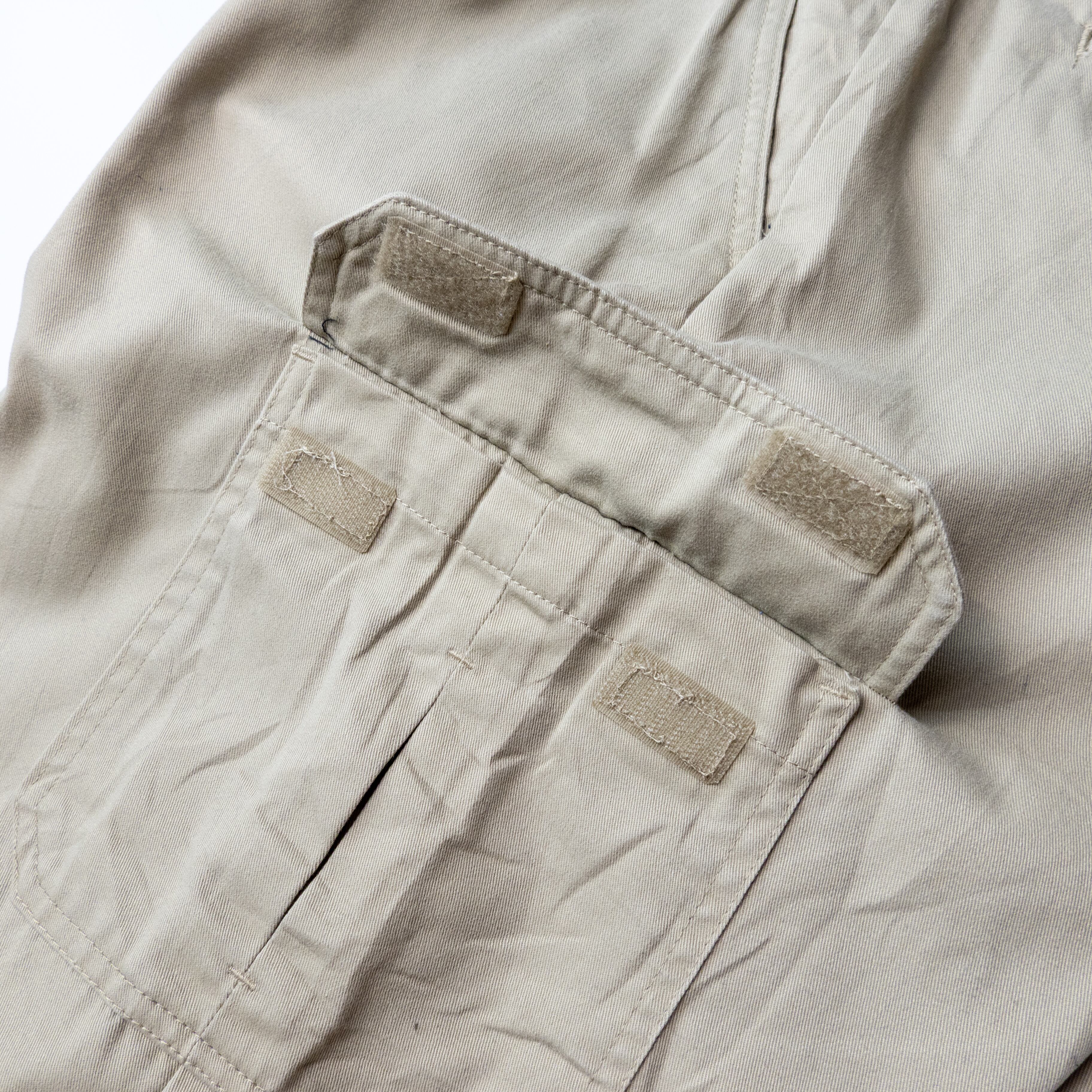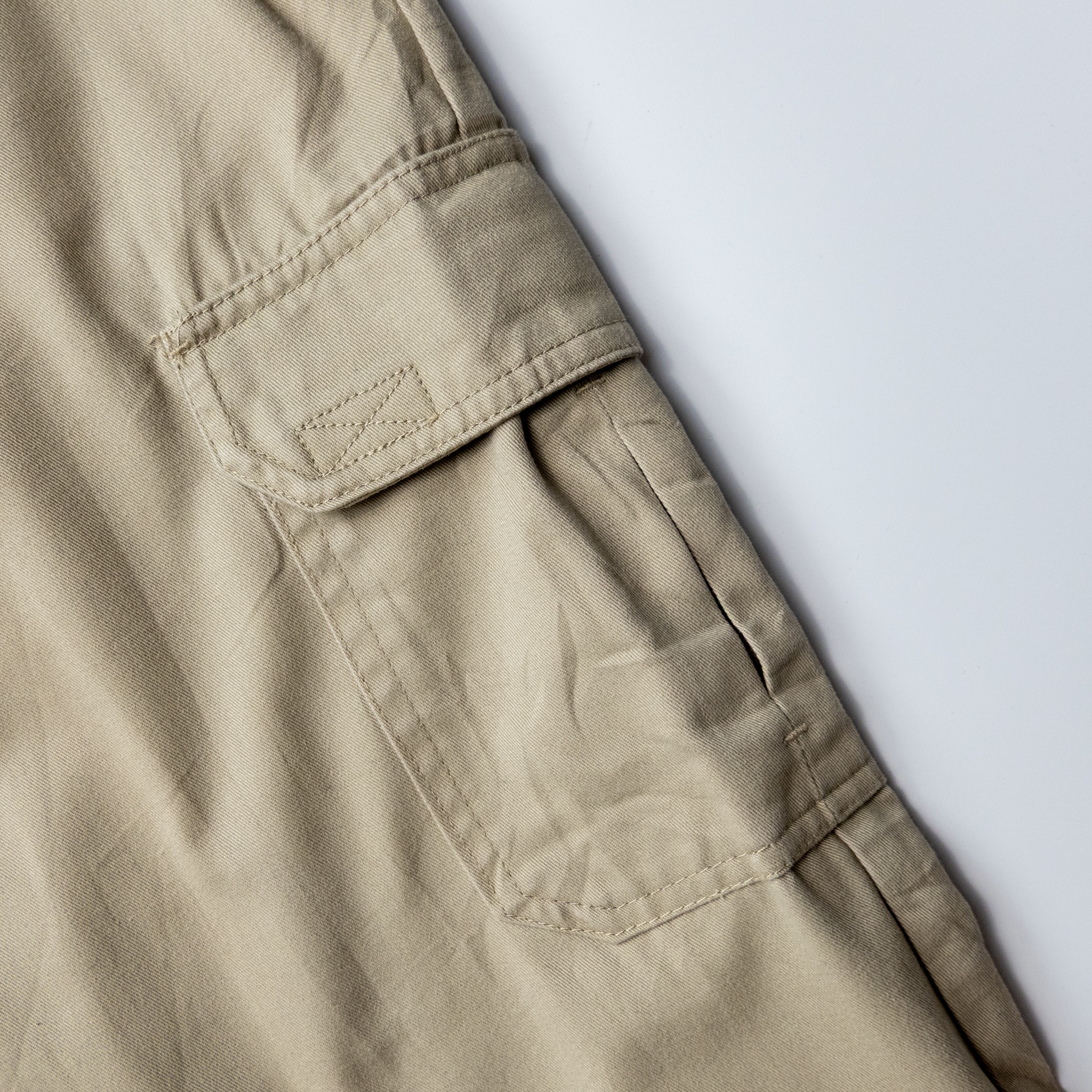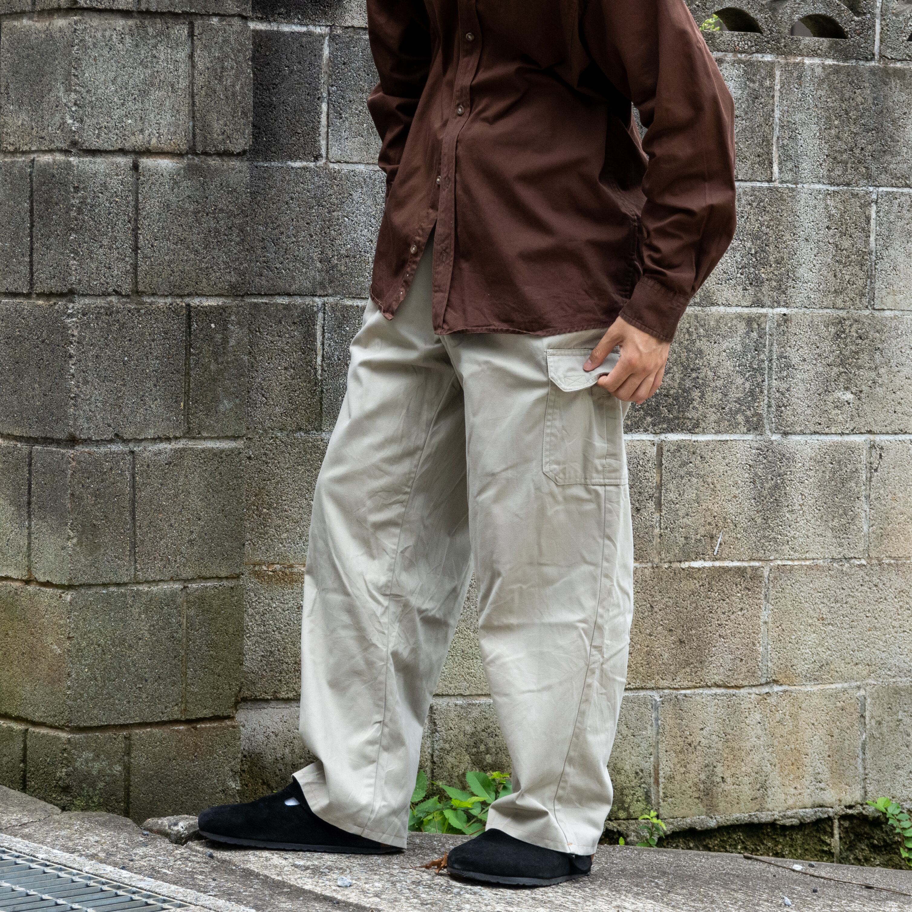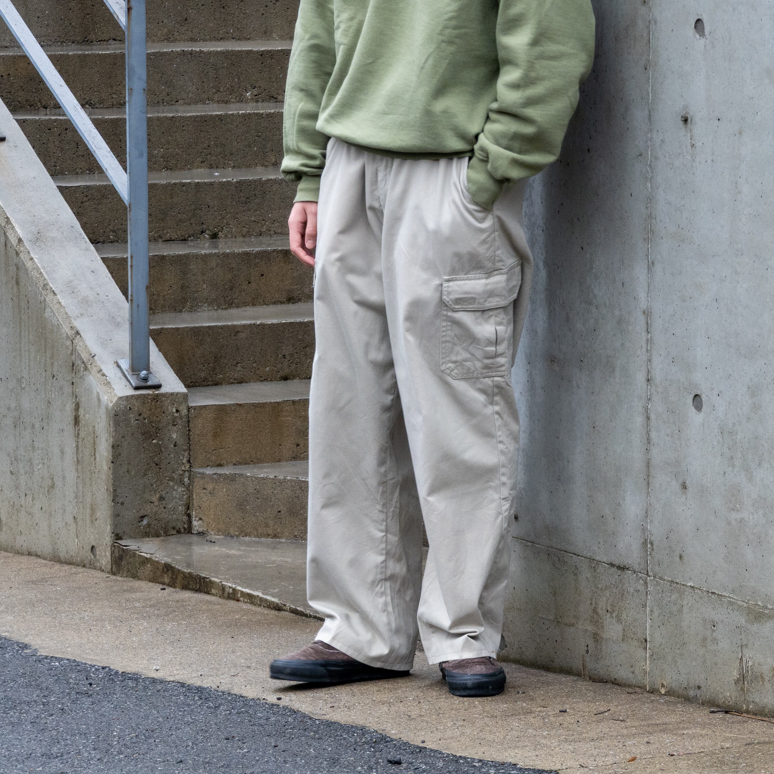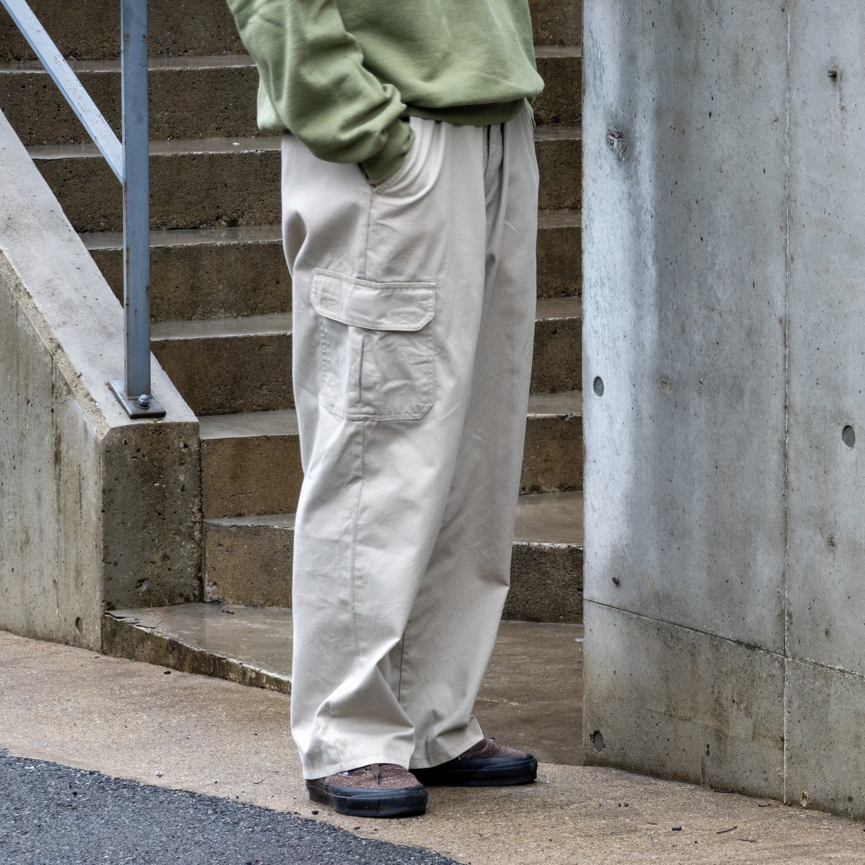 無骨なカーゴディテールでありながら、ベージュの柔らかい色味が土臭さを抑え、カーゴパンツとしてバランスの取れた1本。