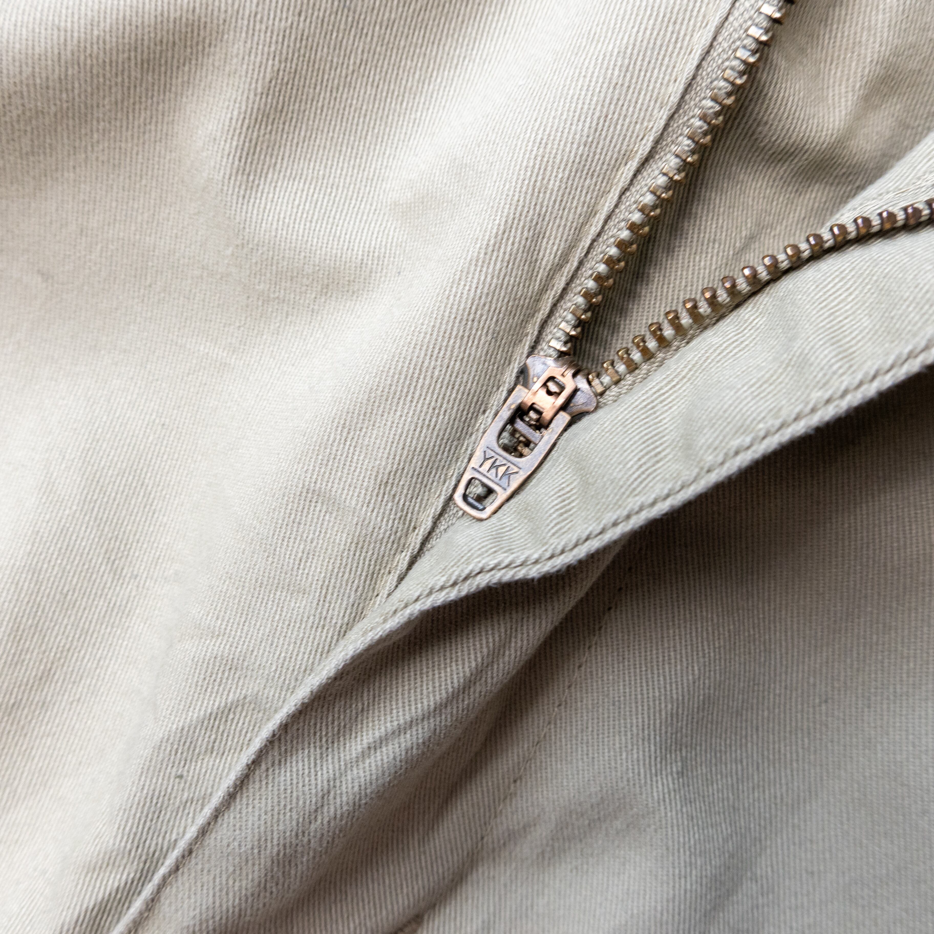 ズドンと太さのあるワタリから、裾に向かって緩やかにテーパード。そのバランス感は、名作として語られるフランス軍M47を思わせるシルエットです。
