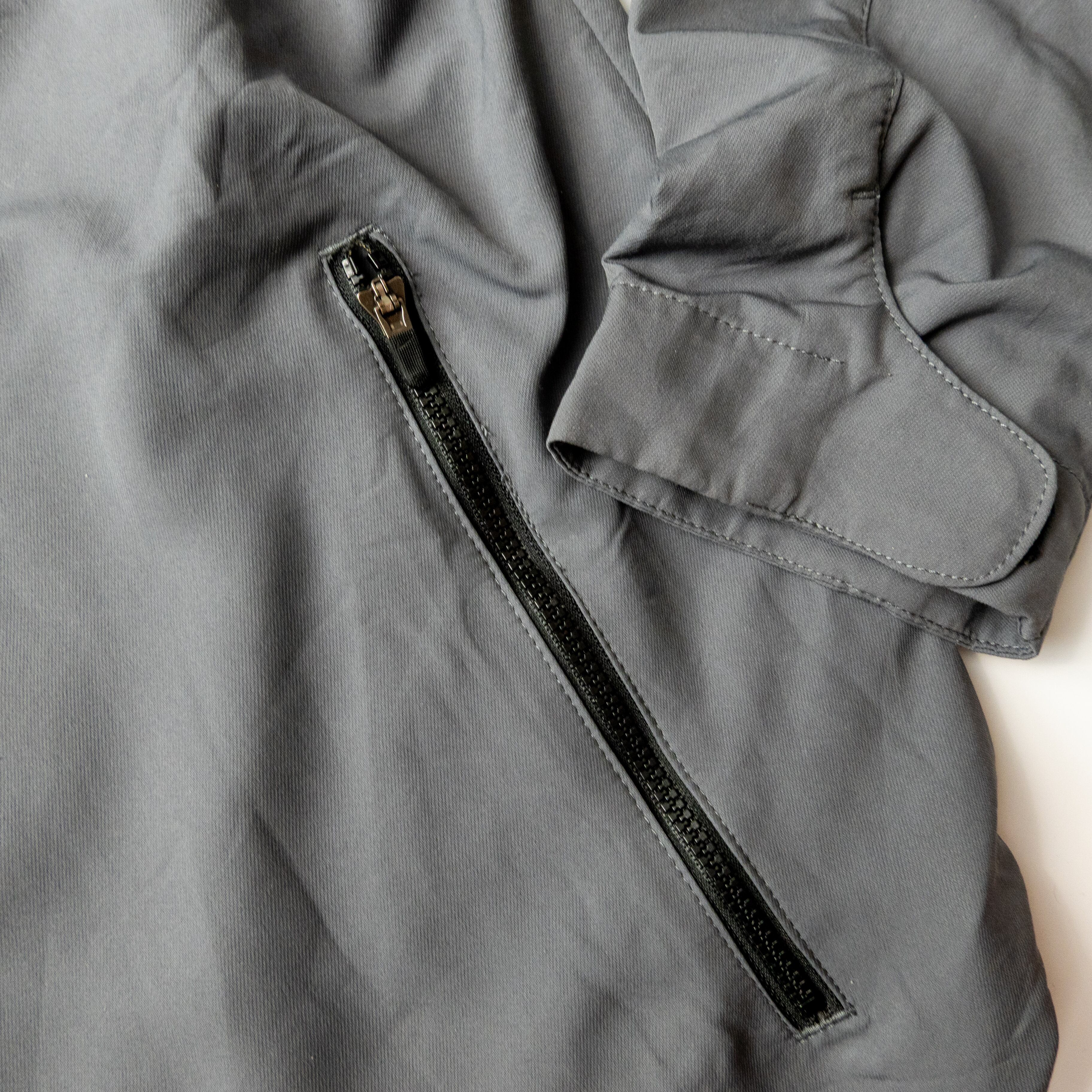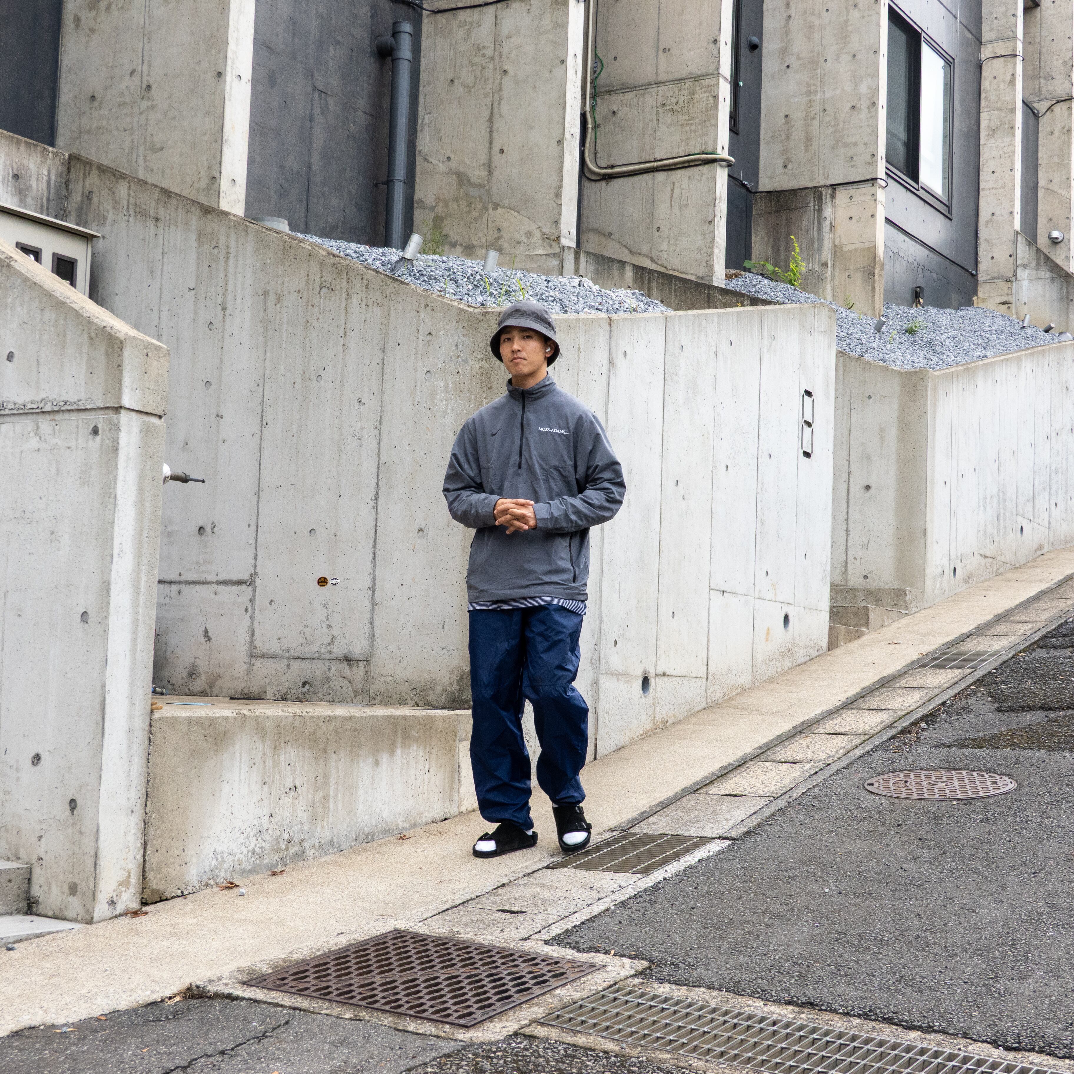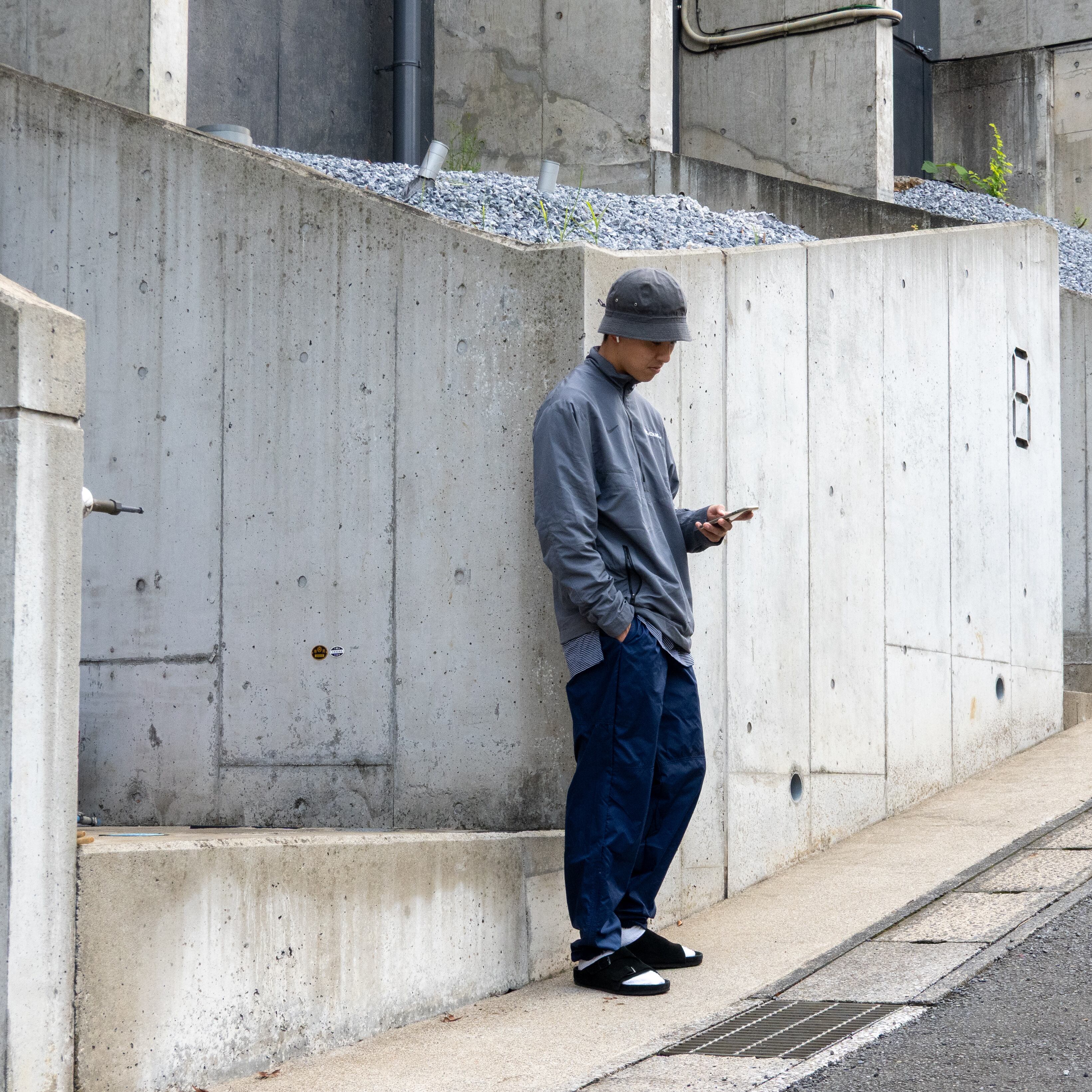 ナイロン系のパンツと合わせて、スタイリッシュな着こなしを。