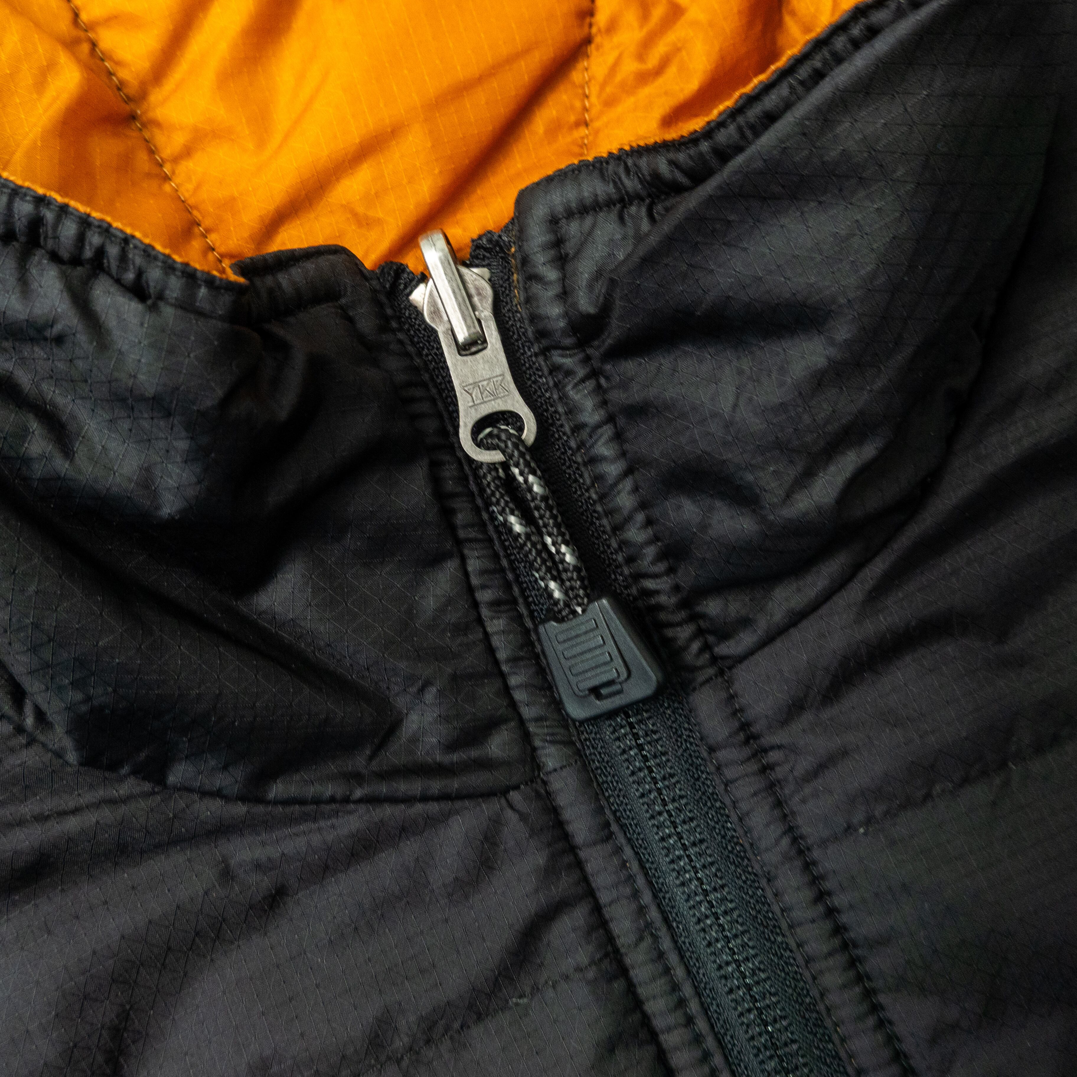 ブラック×オレンジのコントラストが効いた配色で、表裏どちらでも主役になる一着です。