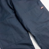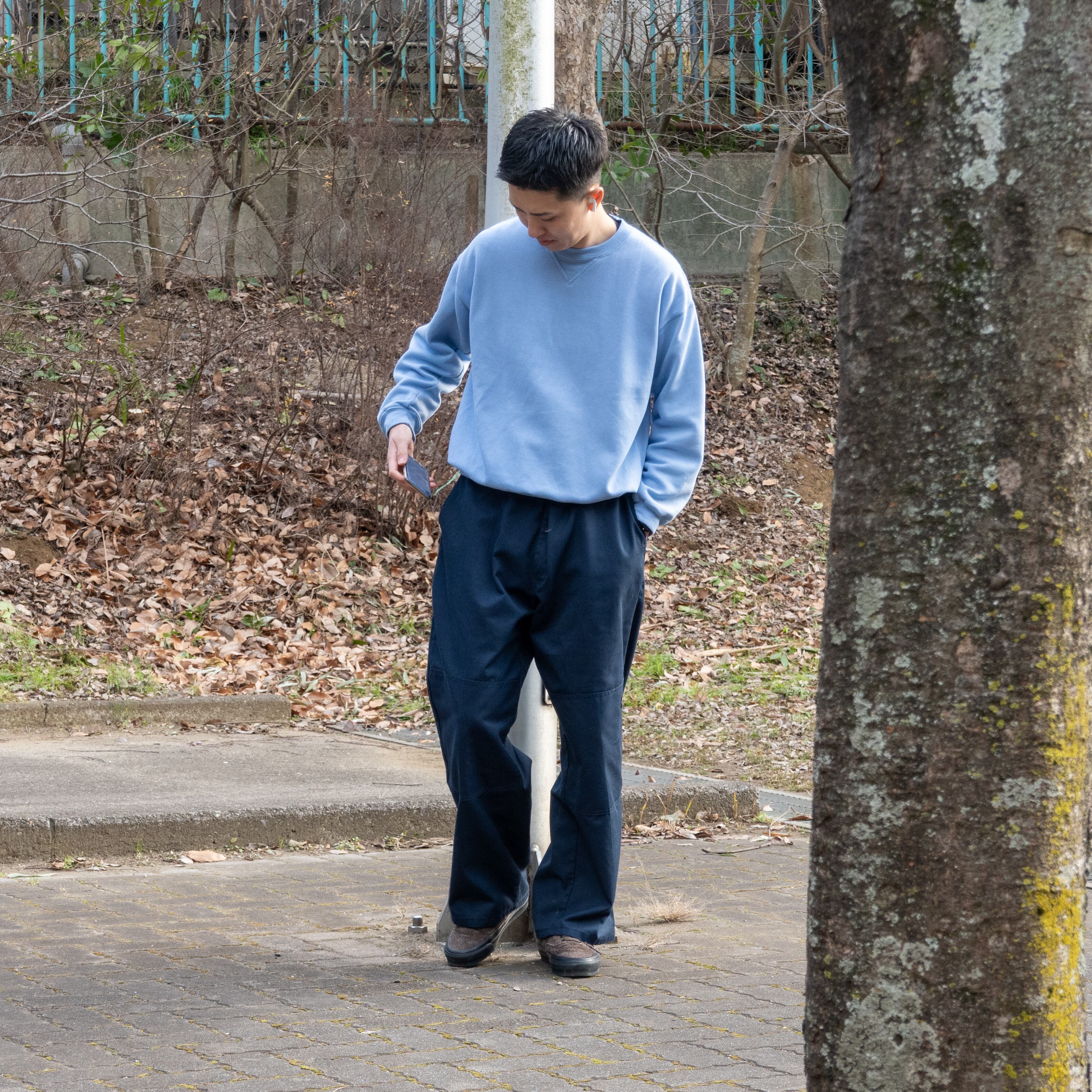 最大の魅力はやっぱりダブルニー特有の無骨さ。膝部分を二重に補強した本来は作業用のディテールが、穿いたときに自然な立体感と存在感を生み出します。