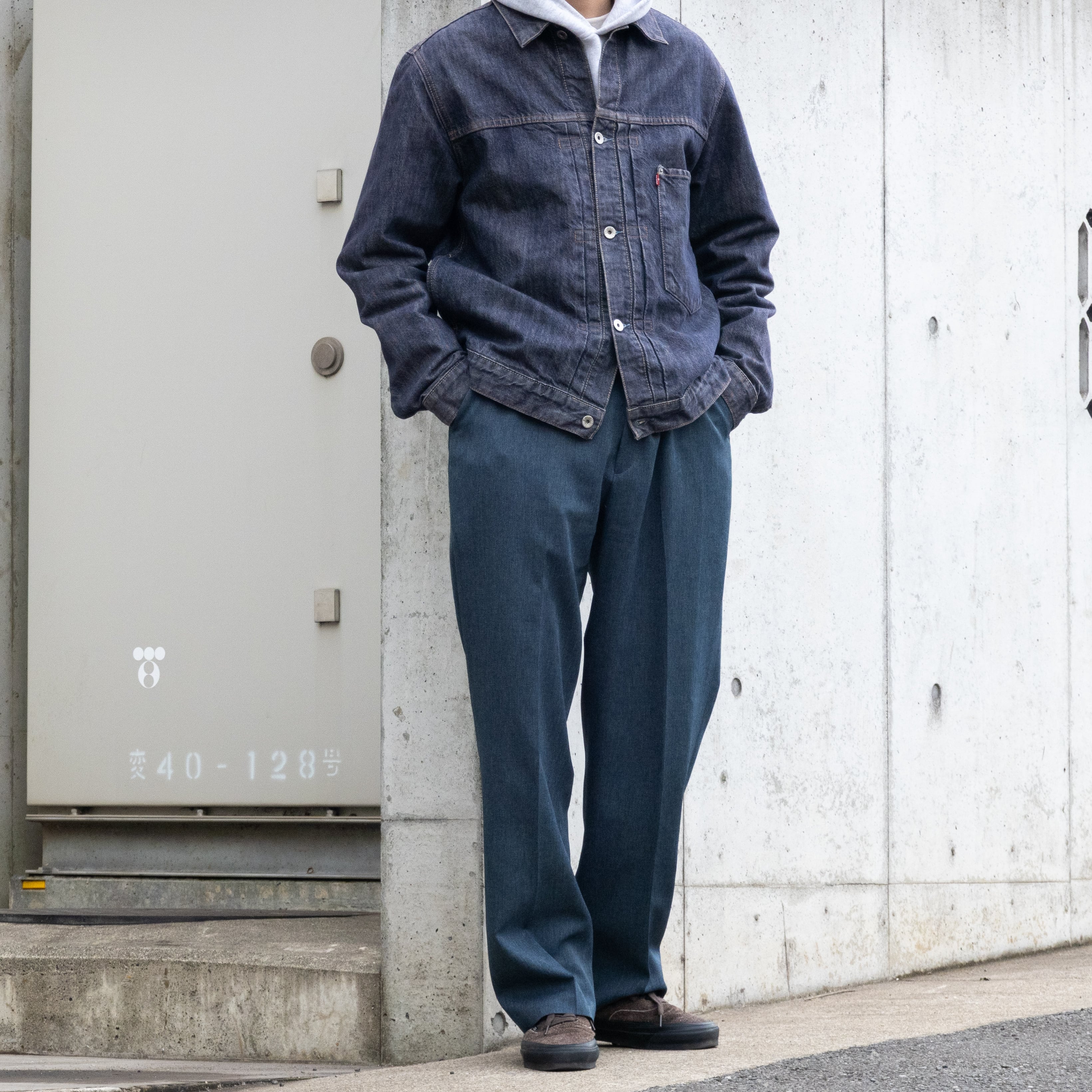 ボックスプリーツを備えたフロントデザインと、程よくコンパクトな着丈は、ワーク由来の雰囲気を残しつつも、スラックスやきれいめなスタイリングにも馴染むシルエット。