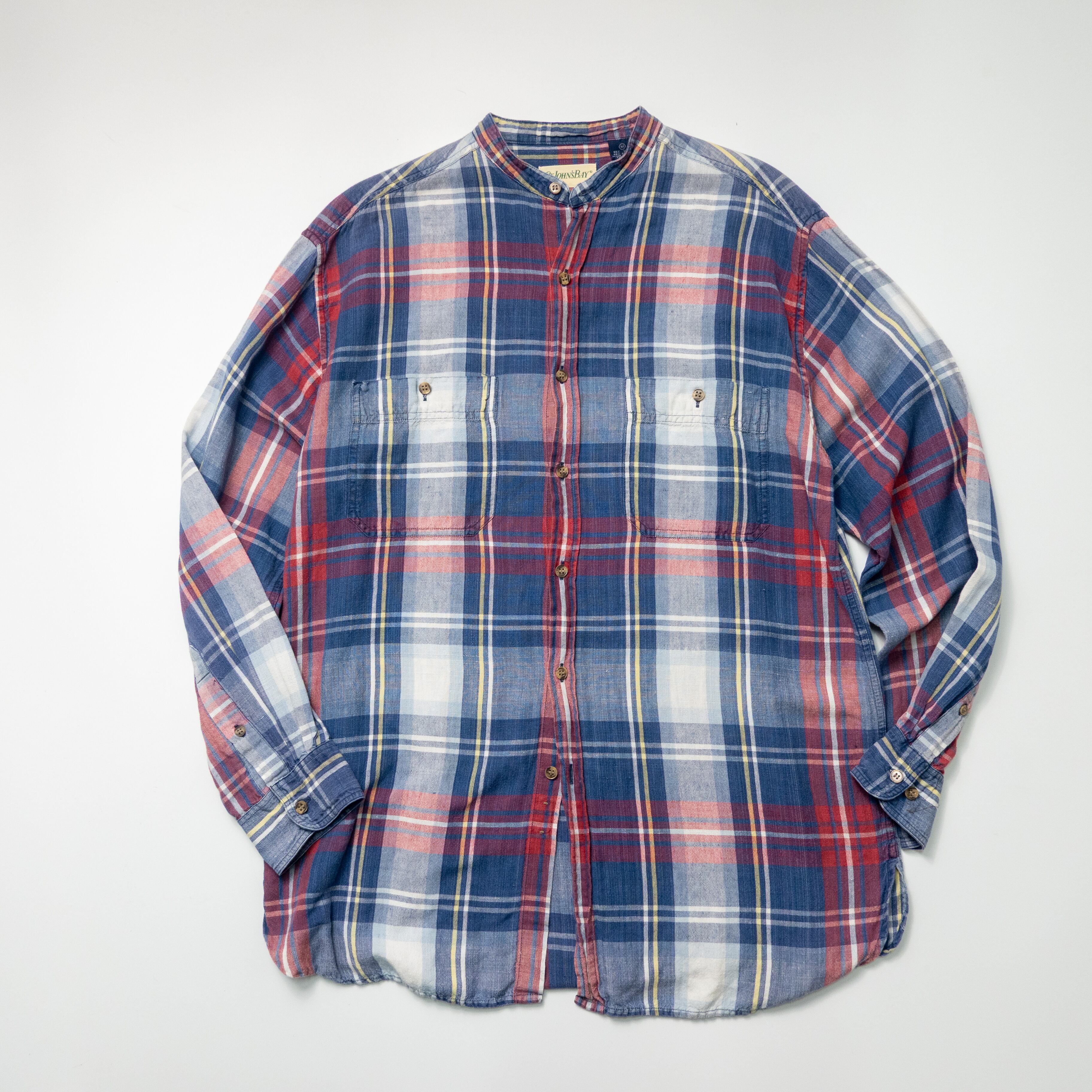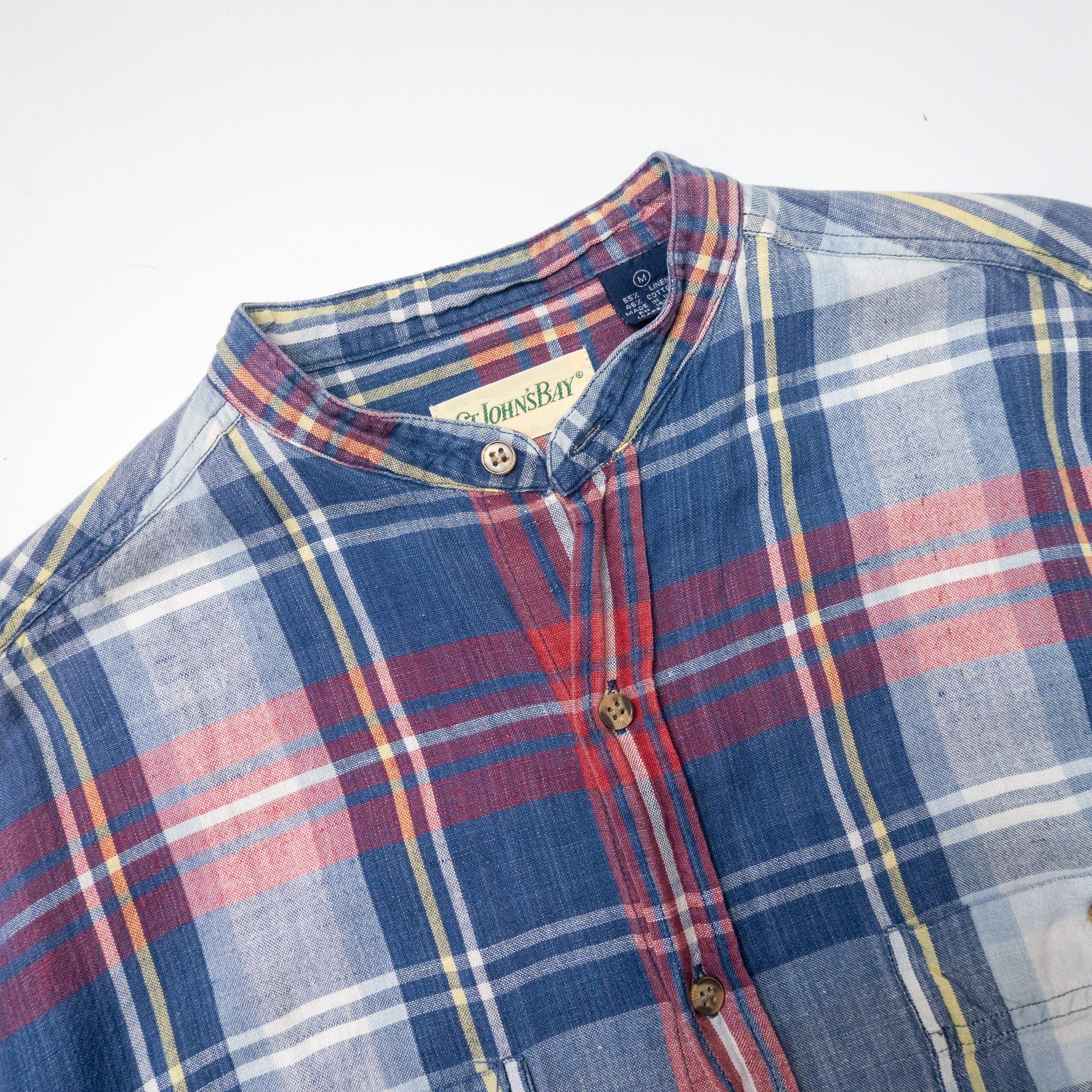 1990’s St. John’s Bay cotton linen band collar shirt