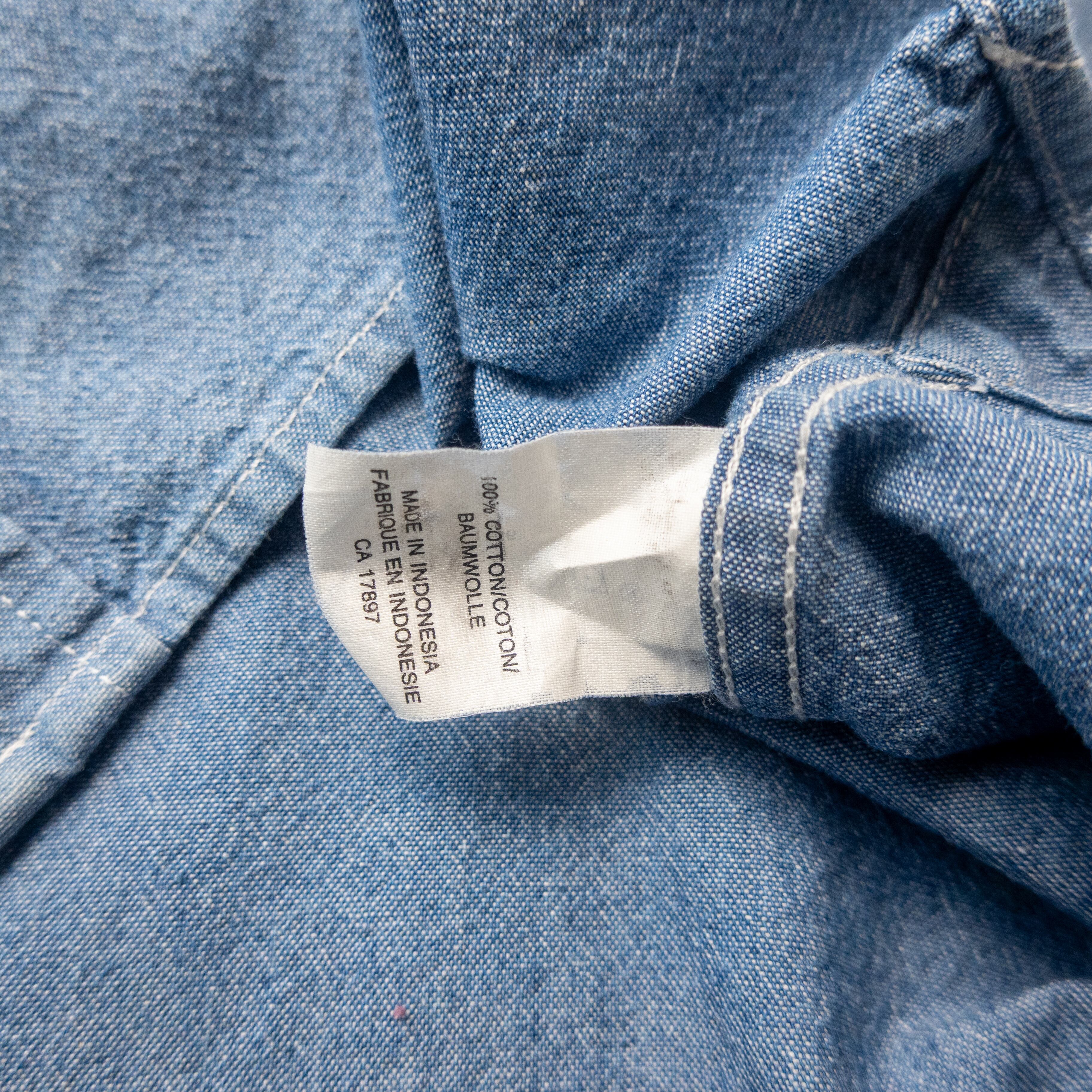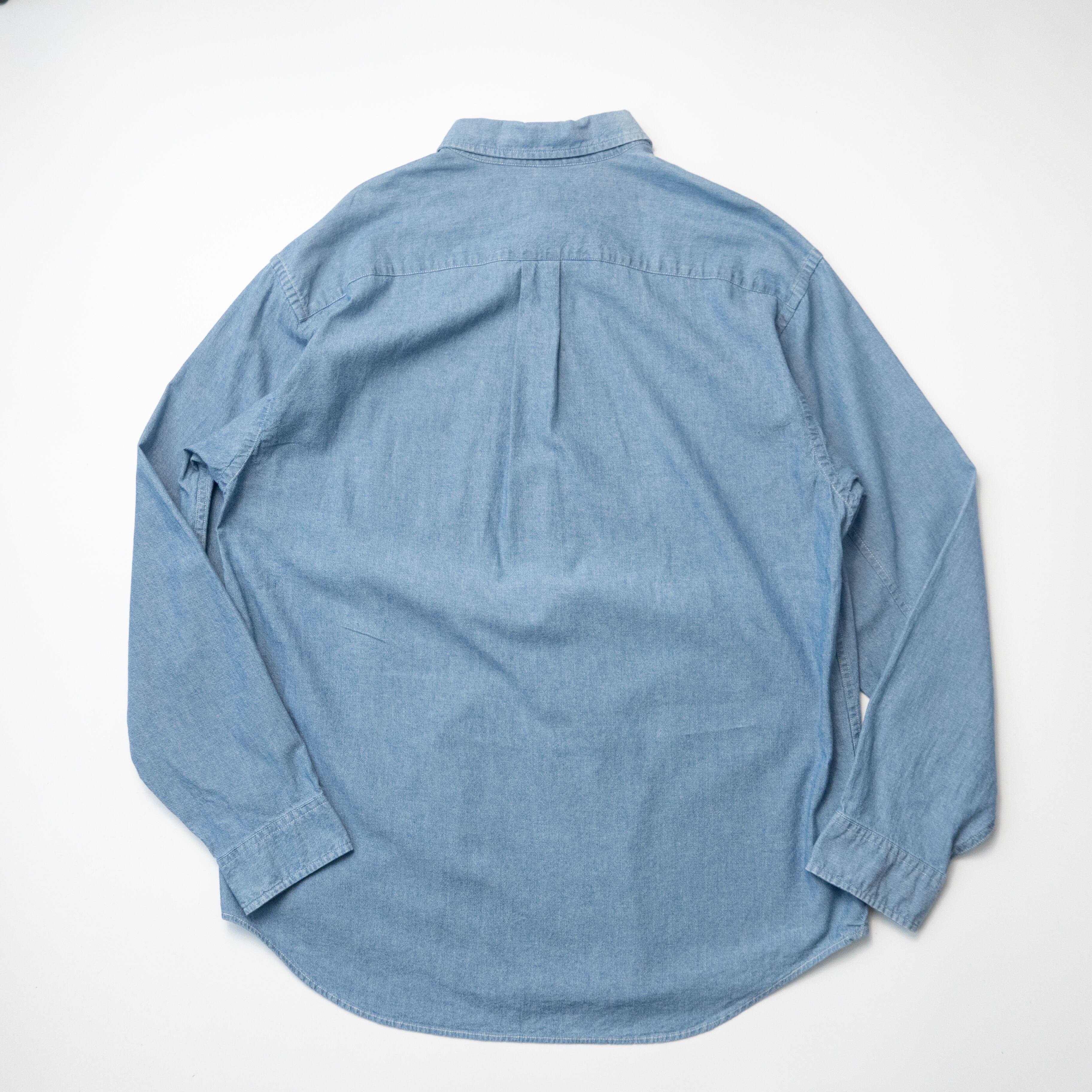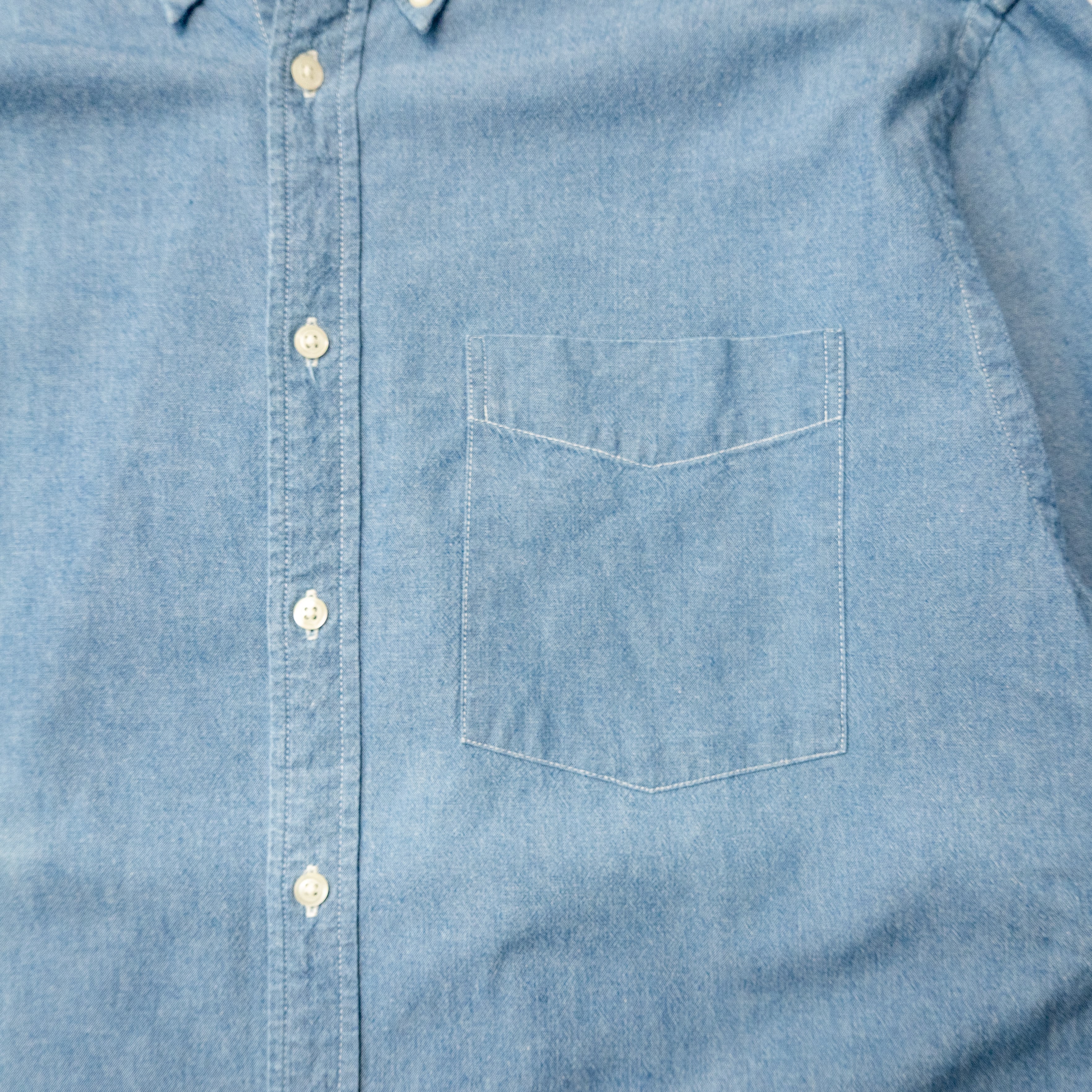 素材はシャンブレー生地。デニムのような表情を持ちながらも、ライトで柔らかく、軽やかな着心地が特徴。デニムほど重さや硬さがないため、ストレスなく着用でき、通年で活躍してくれる万能な素材です。着込むほどに風合いが増し、色のフェードやアタリなど、経年変化を楽しめるのもシャンブレーならではの魅力。