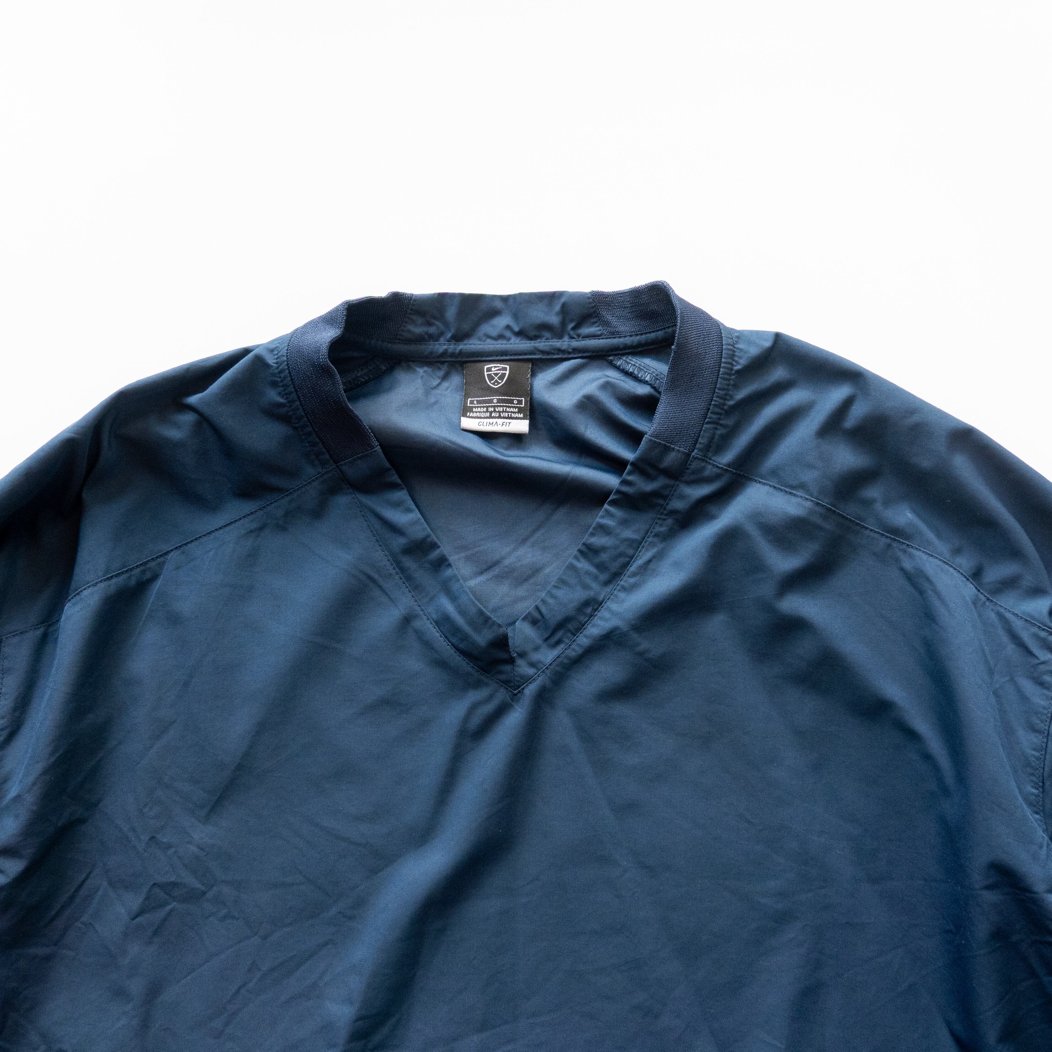 軽量でサッと羽織れるシェル仕様に加え、Vネックデザインがポイント。