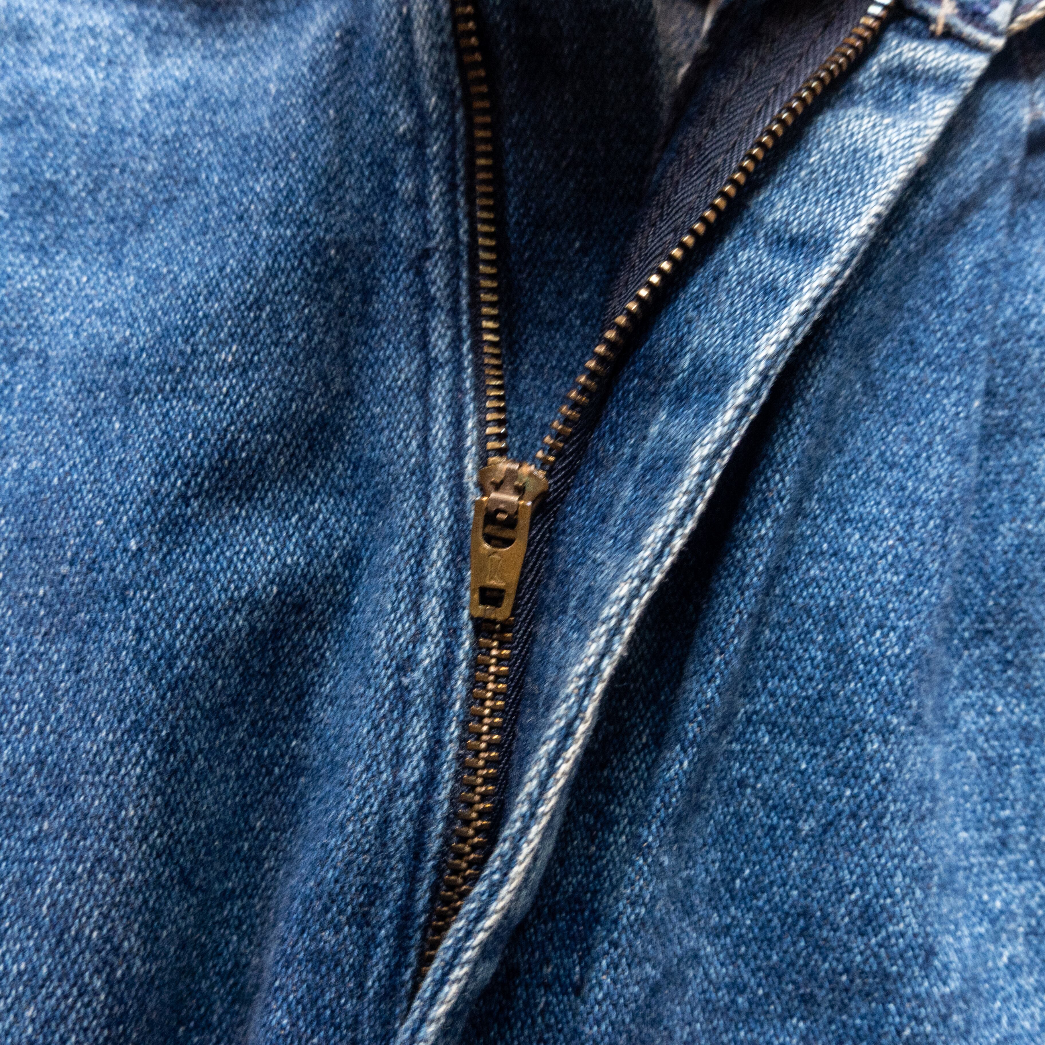 フロントの2タックがしっかりと入ることで腰回りにゆとりが生まれ、裾にかけて綺麗に落ちるテーパードシルエット。デニムでありながらスラックスのような品のある表情が魅力です。