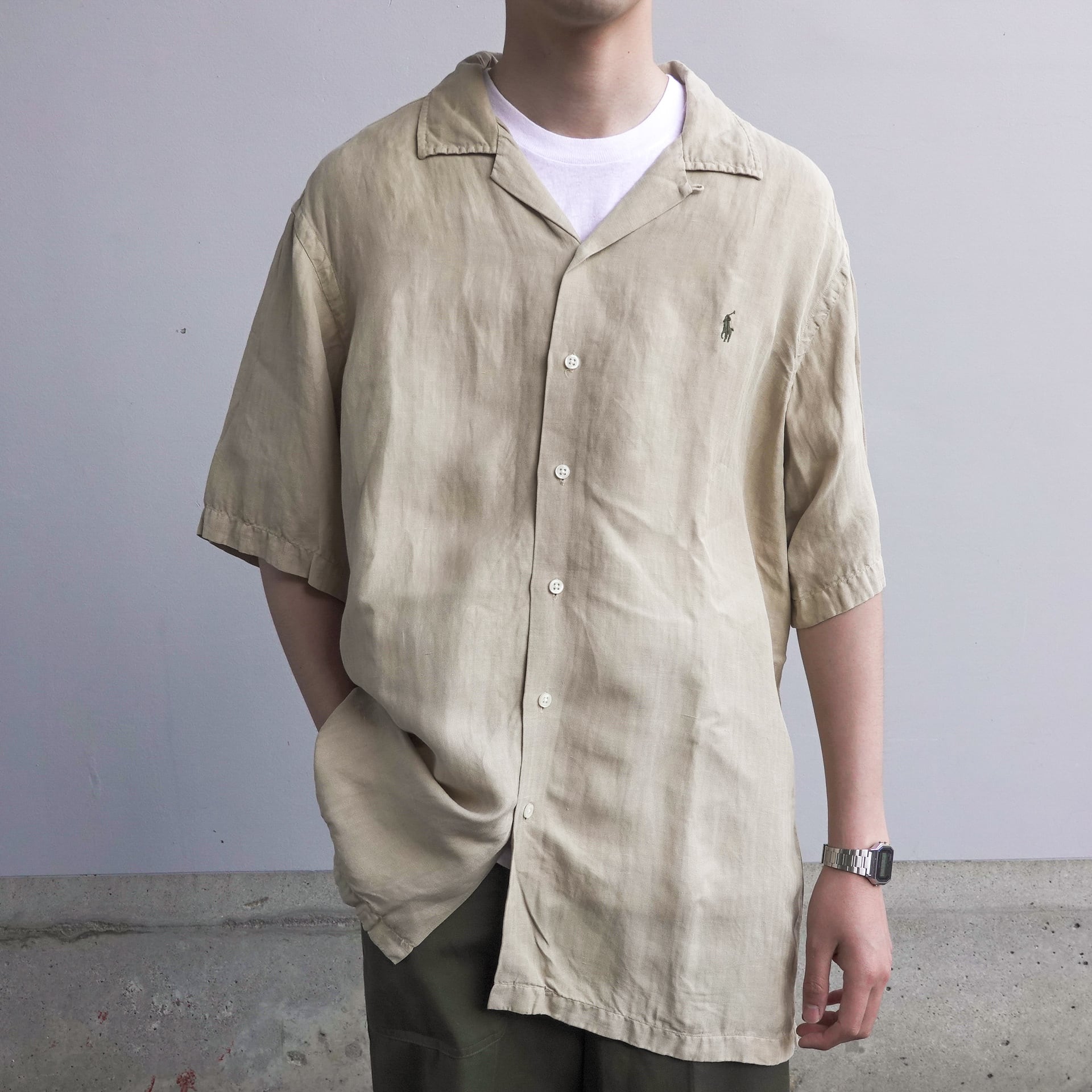 1990's Polo Ralph Lauren silk linen open collar shirt