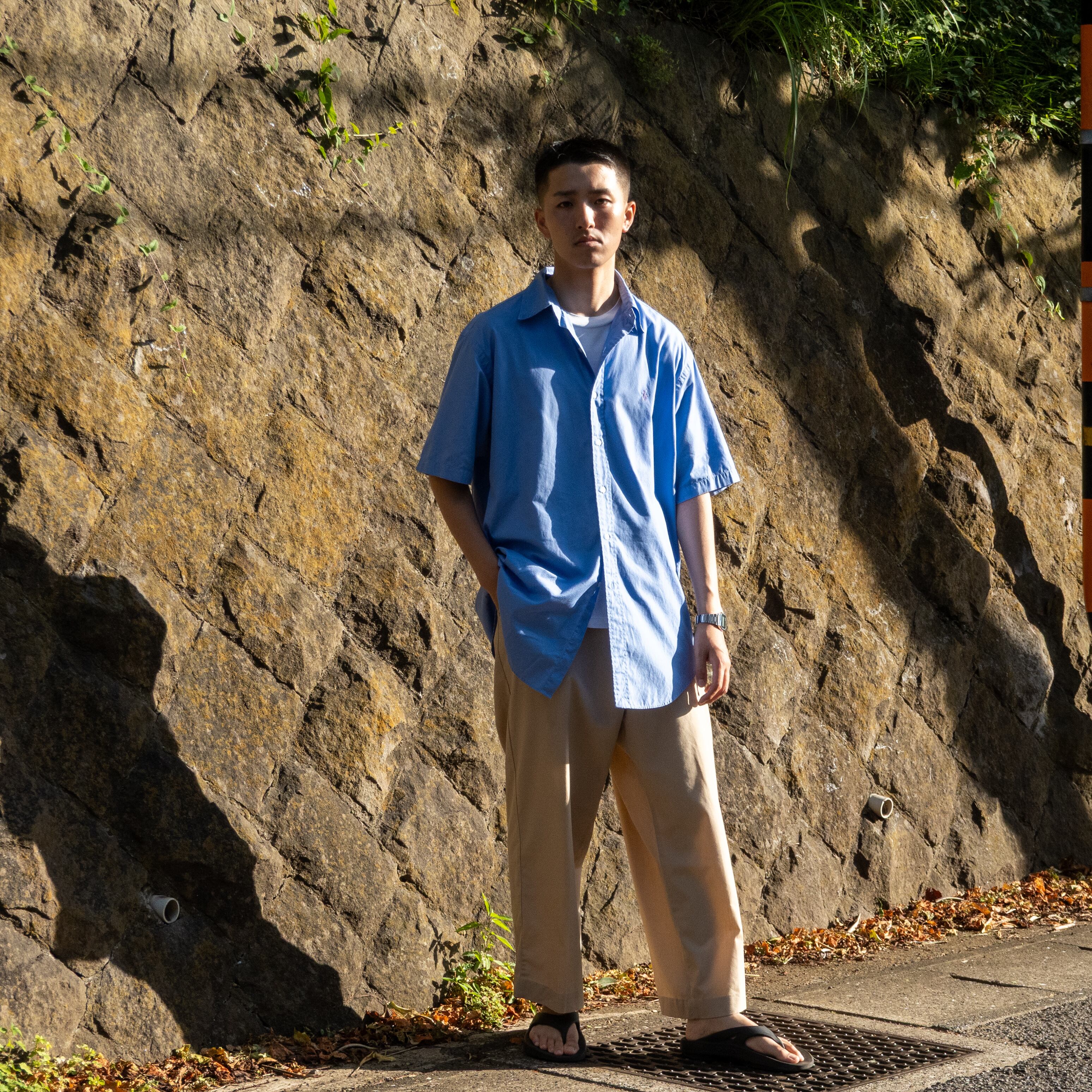 ピンポイントですか、オリーブ•カーキカラーのシャツを合わせて楽しむのはいかがでしょうか。