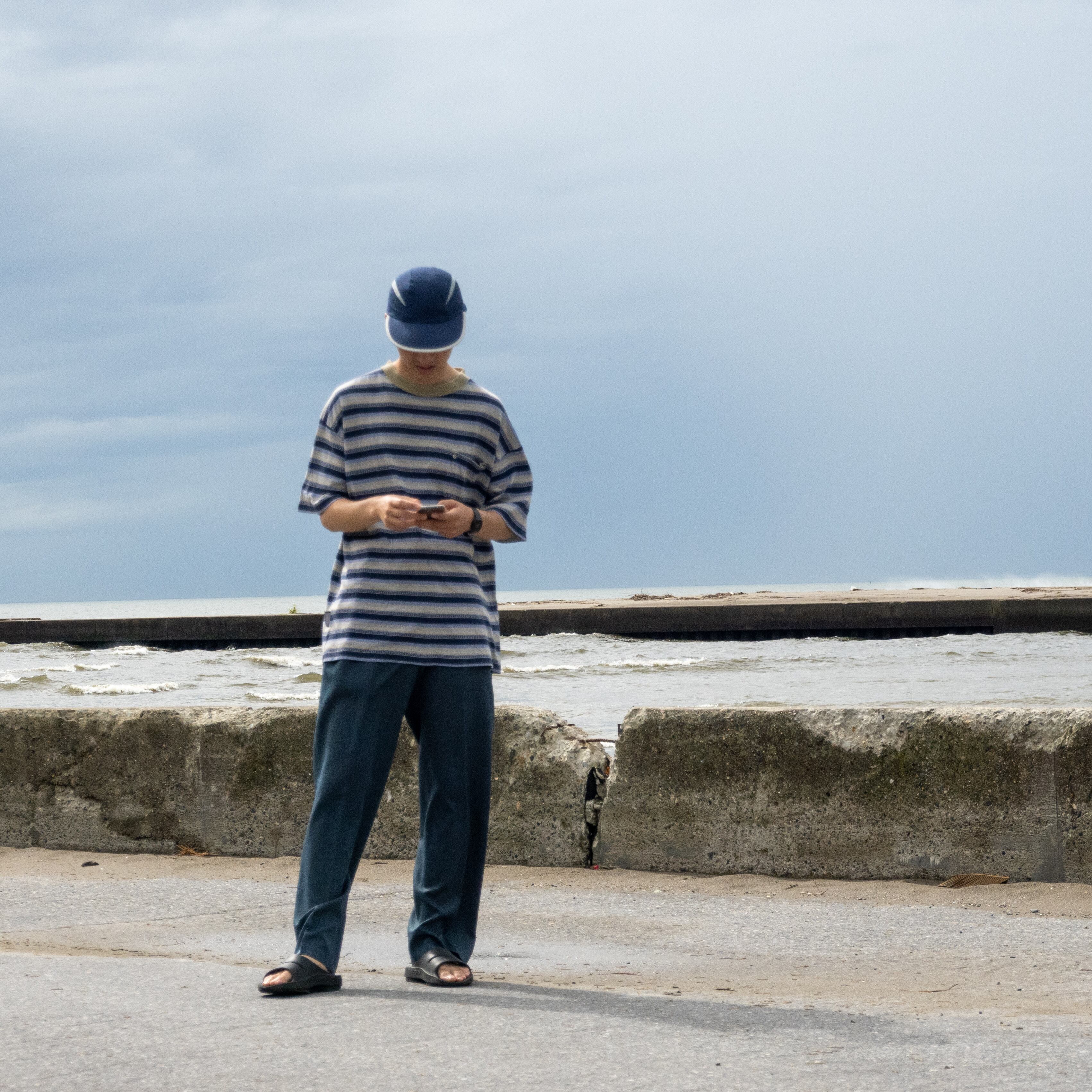 淡いトーンで構成された絶妙な配色のマルチボーダー。襟の切り替えやラウンド裾が、シンプルなTシャツに抜け感とリズムを加えてくれます。ルーズだけどだらしなく見えない、今ちょうど良いバランス感。