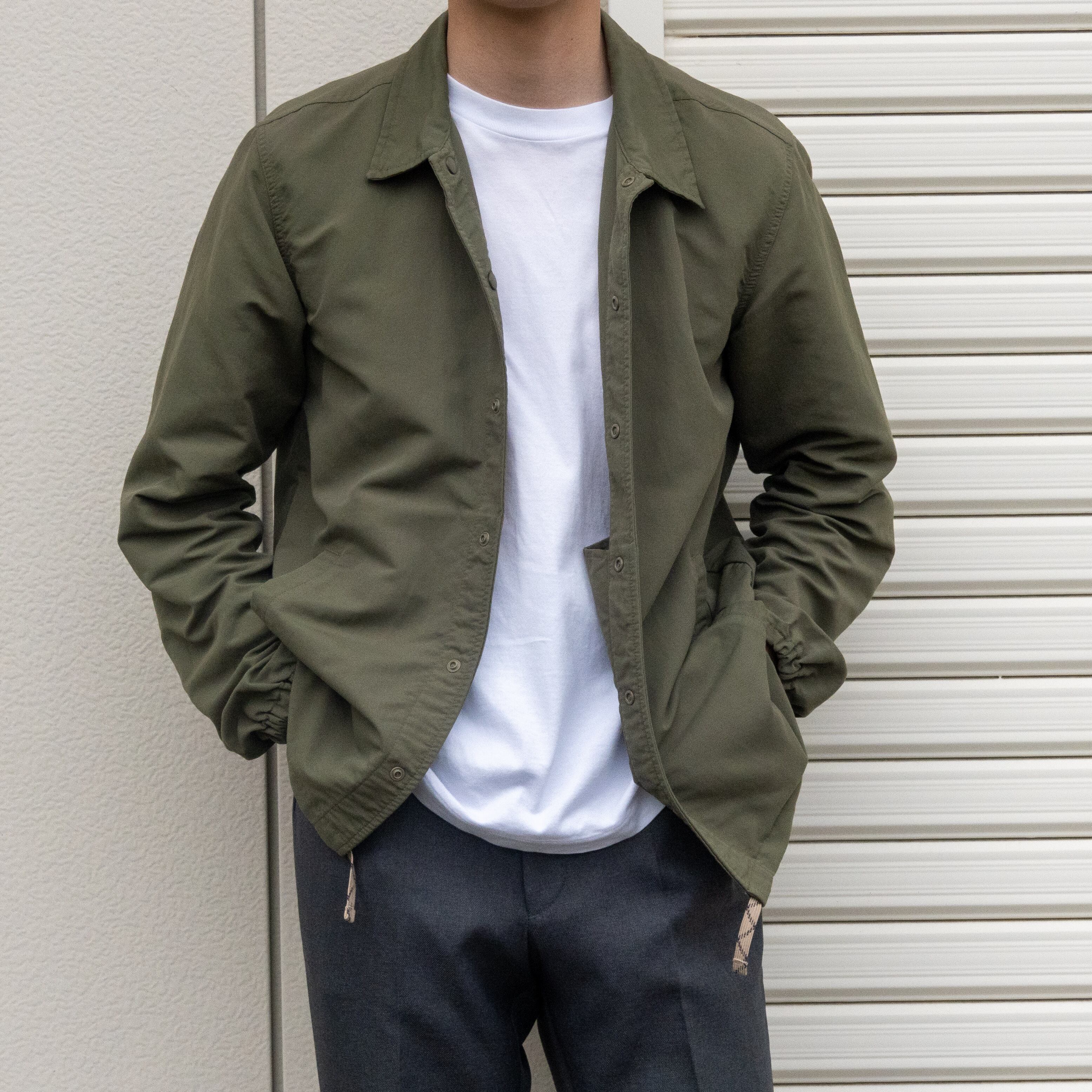 カーキカラー、シンプルデザインに惹かれるコーチジャケット