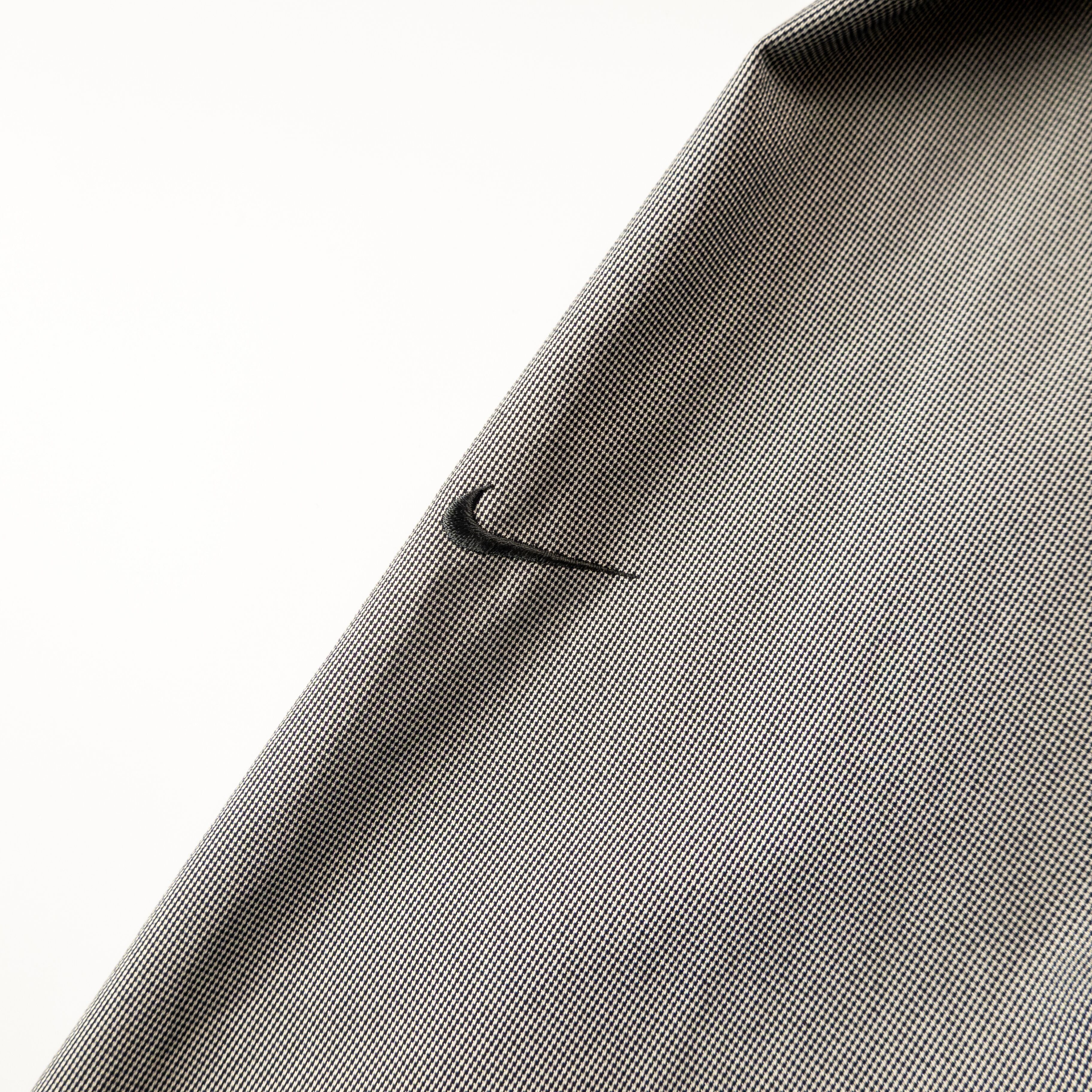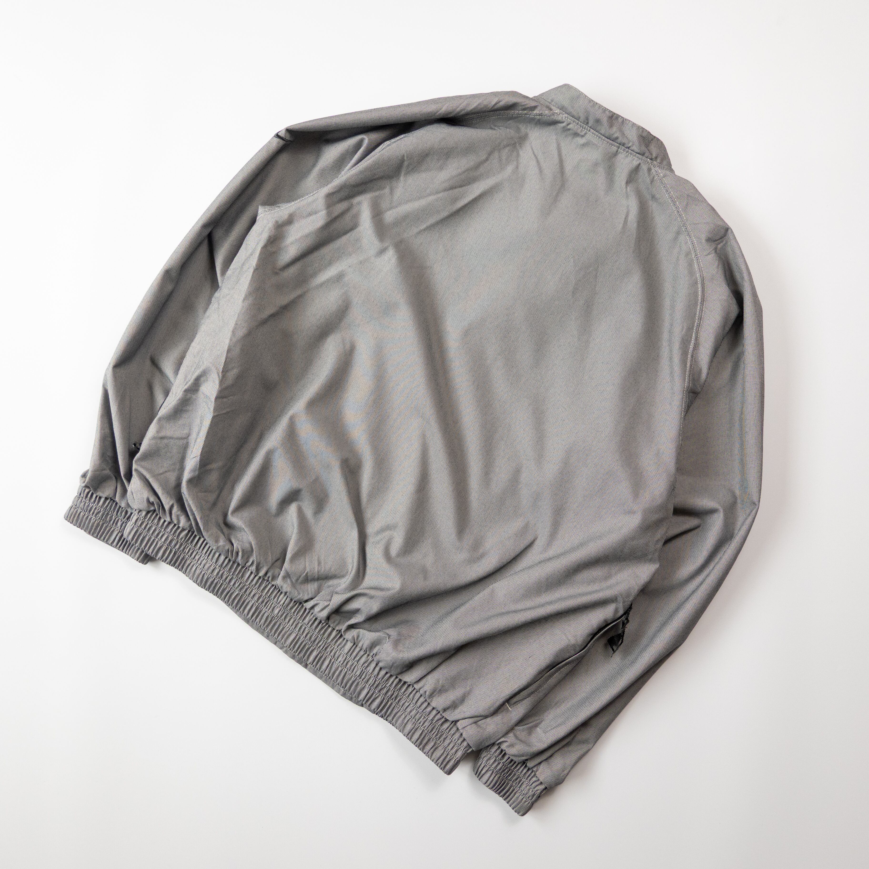 千鳥柄に、スタンドカラー、ハーフのスナップボタン。袖・裾はリブ仕様、サイドはジップポケット
